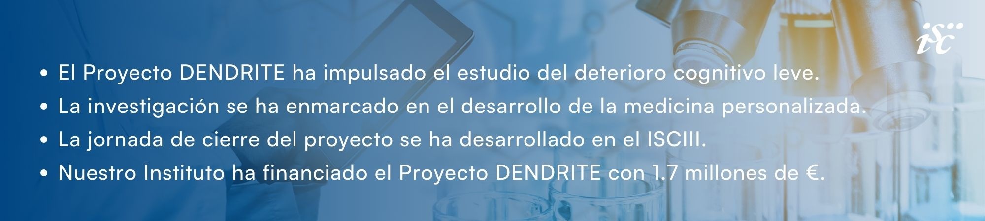 Actualmente, los resultados del proyecto se encuentran en fase de análisis de los distintos conjuntos de datos, paso previo a la formulación del posible modelo predictivo final y del desarrollo de una segunda fase. Los avances obtenidos están alineados con la estrategia de la Infraestructura IMPACT de Medicina de Precisión, a la que el proyecto DENDRITE contribuirá mediante la incorporación de los datos generados y el depósito de las muestras sanguíneas en el biobanco asociado a dicha estrategia.