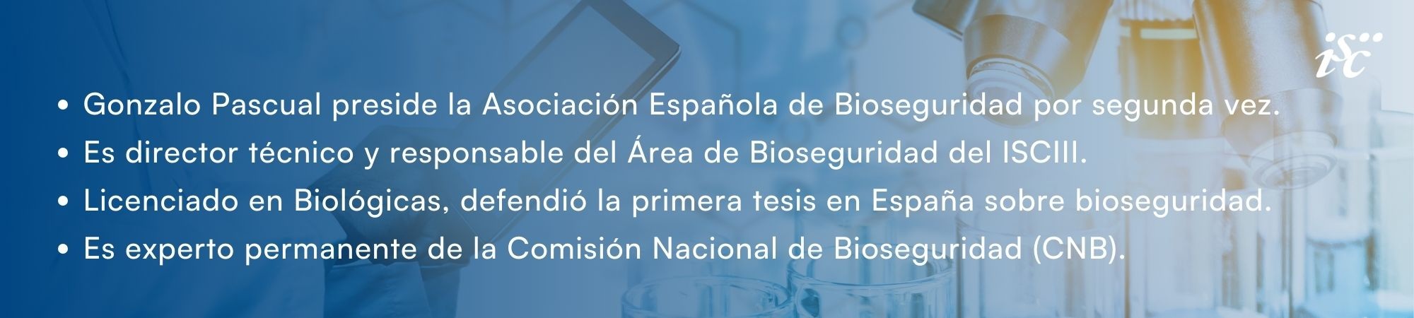 Gonzalo Pascual Álvarez, director técnico y responsable del Área de Bioseguridad del Instituto de Salud Carlos III (ISCIII), ha sido recientemente nombrado presidente de la Asociación Española de Bioseguridad (Aebios). Se trata de la segunda vez que ostenta este cargo, ya que presidió la citada asociación entre 2011 y 2014, además de ser miembro fundador.