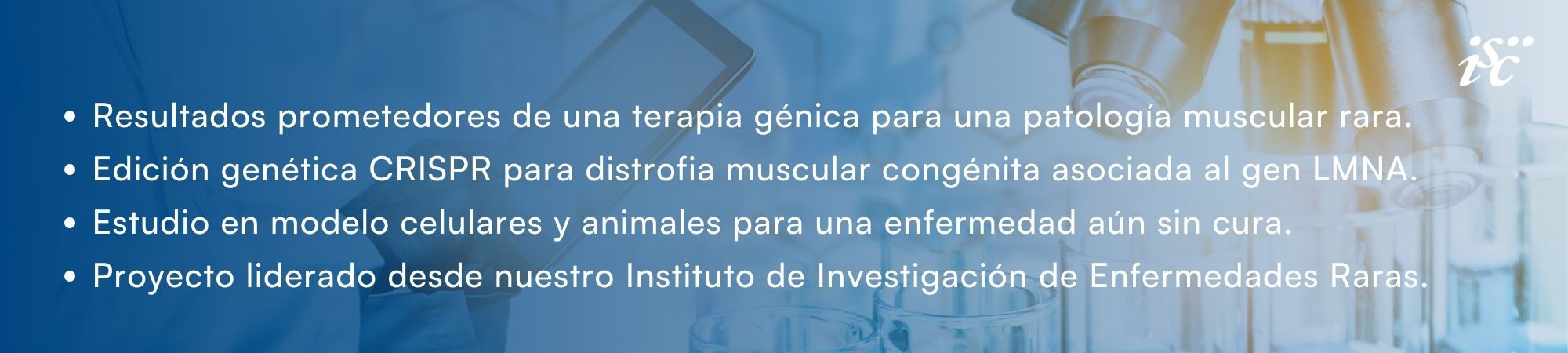 • Referencia del artículo: CRISPR-mediated targeting of the LMNA c.745C>T mutation enhances survival and cardiac function in congenital muscular dystrophy. Gómez-Domínguez, Déborah et al. Molecular Therapy Advances, Volume 34, Issue 1, 201653. https://www.cell.com/molecular-therapy-family/advances/fulltext/S3117-387X(25)00003-5.