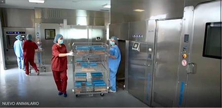 Donde se alojan conejos, pez cebra, hámster y cobayas. Aunque el acceso es restringido y la entrada se realiza con equipos de protección individual, no hay ducha de aire, y las medidas de contención son menores al tratarse de animales comerciales de estatus convencional de origen.